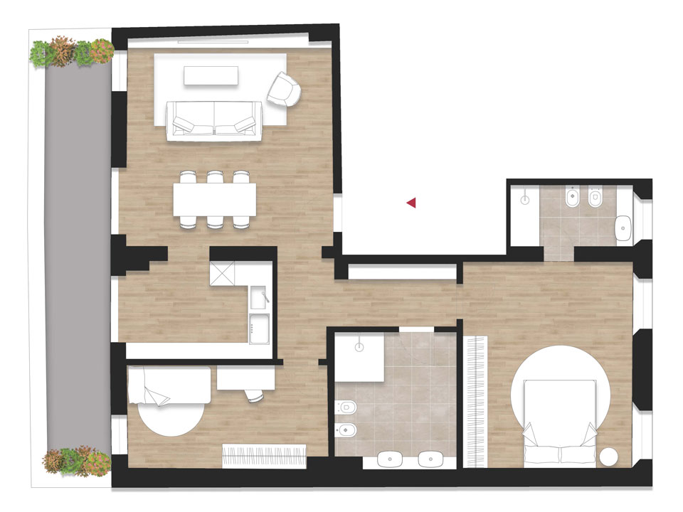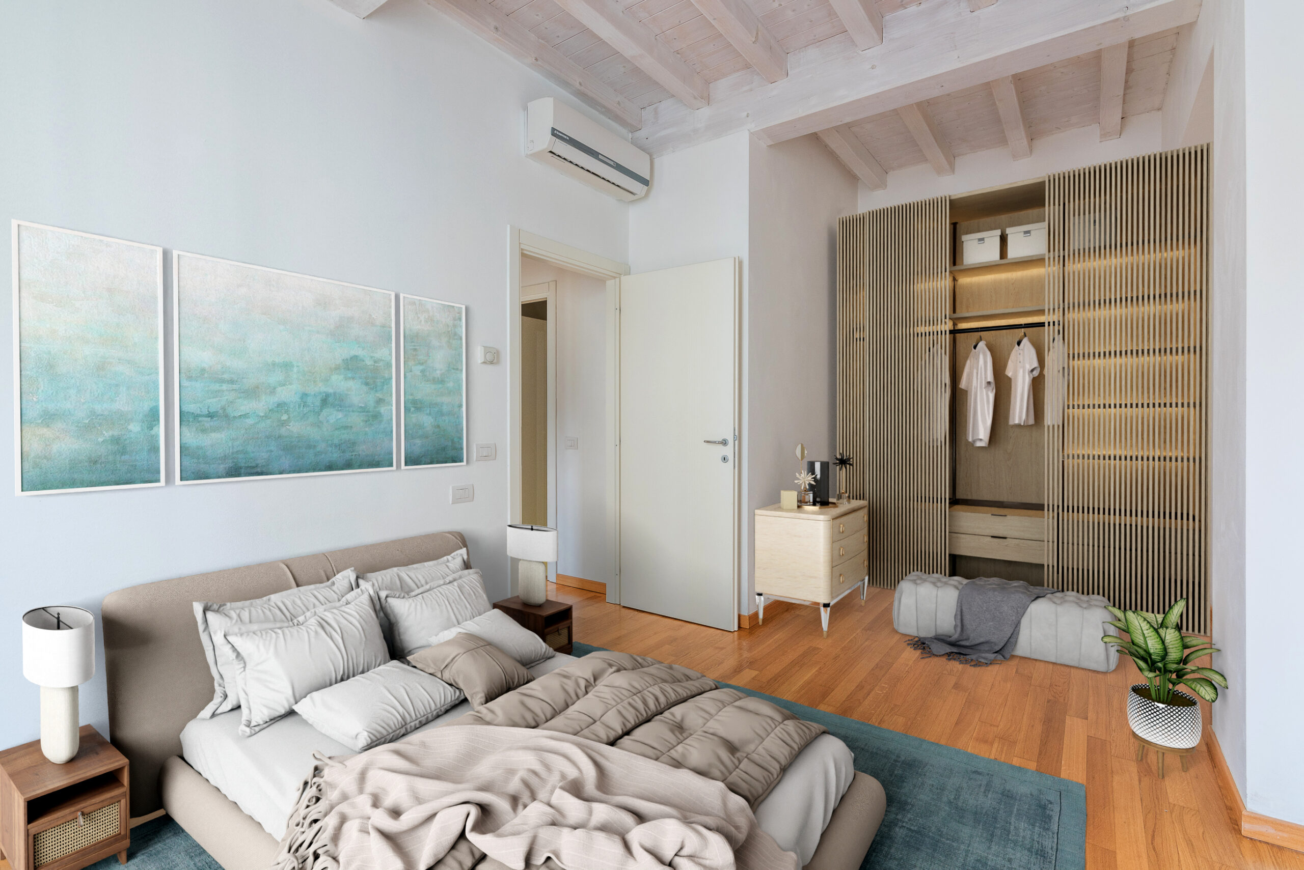 La ristrutturazione è stata guidata dall’obiettivo di coniugare benessere e funzionalità, valorizzando le parti comuni eleganti e integrando sistemi moderni, come il riscaldamento a pavimento centralizzato e l’impianto di condizionamento integrato.